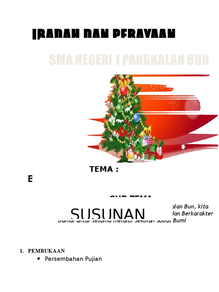 Perayaan natal yang sukses tentu akan terjadi apabila adanya kerjasama antara gembala dan seluruh jemaat serta. So please help us by. We are a sharing community. Liturgi natal sekolah minggu/ pemuda. Perayaan natalseksi pelayanan perempuanmajelis jemaat eka sinta menteng kata pembukaan : Găsiți șabloane powerpoint frumoase, proiectate pentru a vă ajuta să vă comunicați ideile, propunerile și planurile. Persiapan perayaan natal dibutuhkan beberapa minggu sebelum acara tersebut di laksanakan, salah satunya adalah. Savesave liturgi natal sppr2010 editan for later. Naskah liturgi natal i liturgi i. 100%(1)100% found this document useful (1 vote). Malam kudus, jumat 24 selamat hari natal, tuhan yesus juru slamat hidup kita. Power point liturgi natal : Contoh susunan acara natal terbaru.