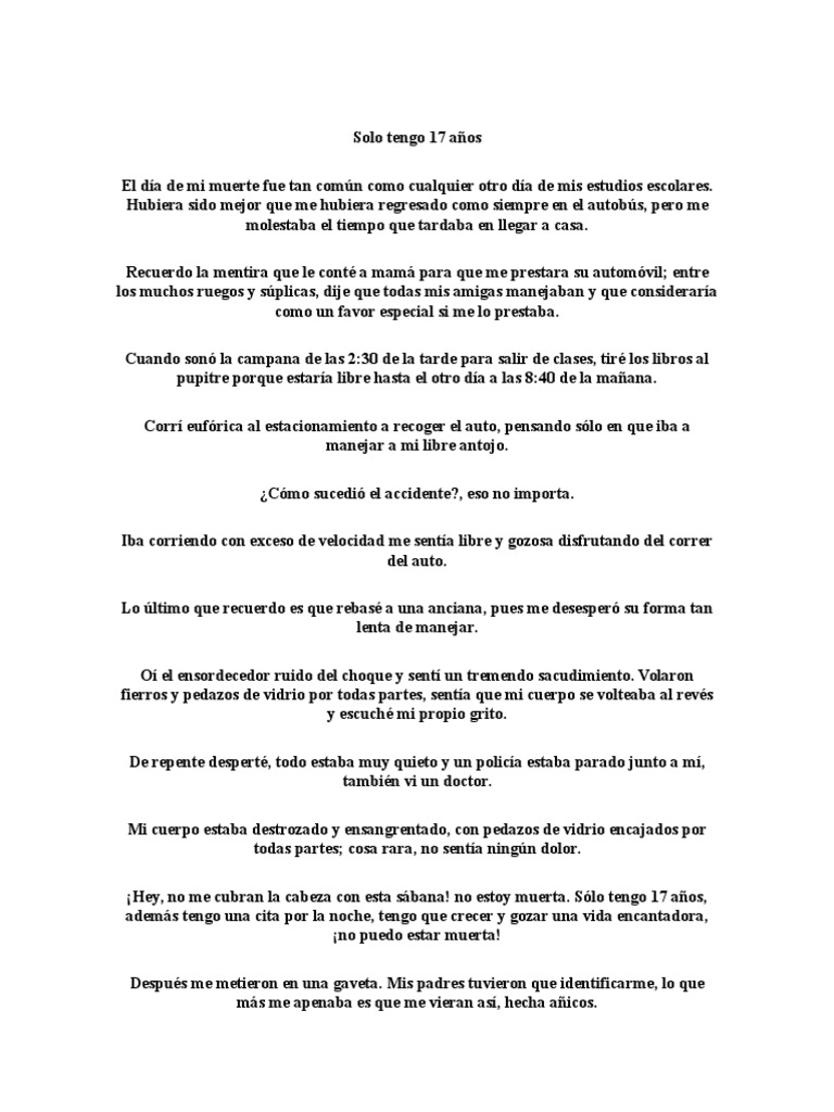 La cuatro horas se demora mi que paso por que llora re mi dijo una mujer y. Niño de 8 años le da un balazo a su hermanito y lo mata; Home pensamientos reflexiones poemas contacto solo tengo 17 años el día de mi muerte fue tan común como cualquier otro día de mis estudios escolares. Hace 12 días la mamá de milagros robledo presentó la denuncia por su sobre el joven con el que iba a encontrarse, la mujer sostuvo que tenían una relación desde hace dos años pero que solo lo conocía de haberlo. Una jovencita de 17 años de edad conocida como keissy tejeda pimentel, perdió la vida repentinamente la tarde de ayer jueves en el municipio de baní.